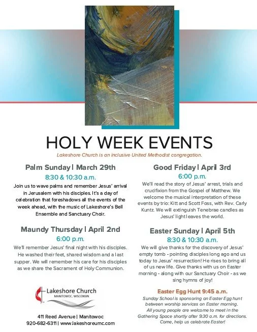 The path from ashes to Alleluia is one that we walk together, in community. We make our way from the solemnity of Lent, to the drama of Holy Week, to the glory of Easter. We invite you to join our Lakeshore Church family for any of these worship opportunities in-person or online!
